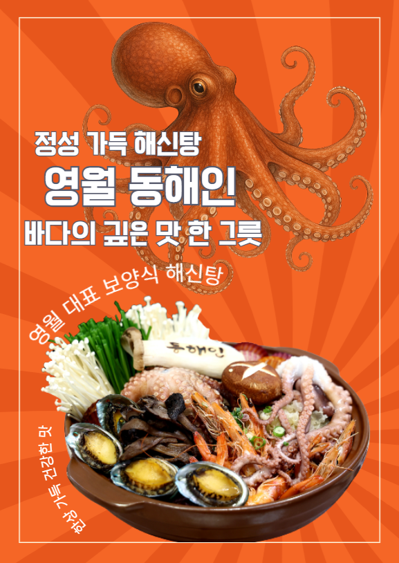 키워드: 서부시장문어장, 강원도전복장, 해신탕스페셜, 피문어장, 영월해신탕