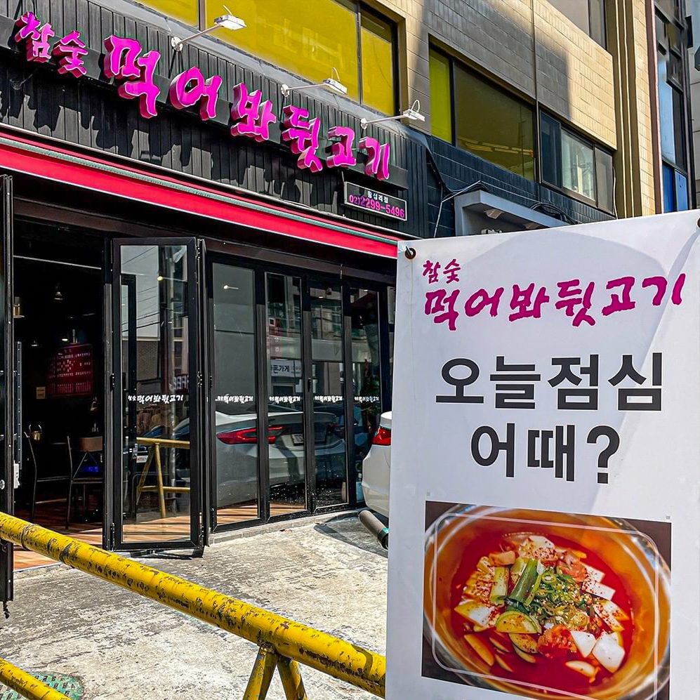 핑크색 간판의 '참숯 먹어봐 뒷고기'를 찾아주세요.^^