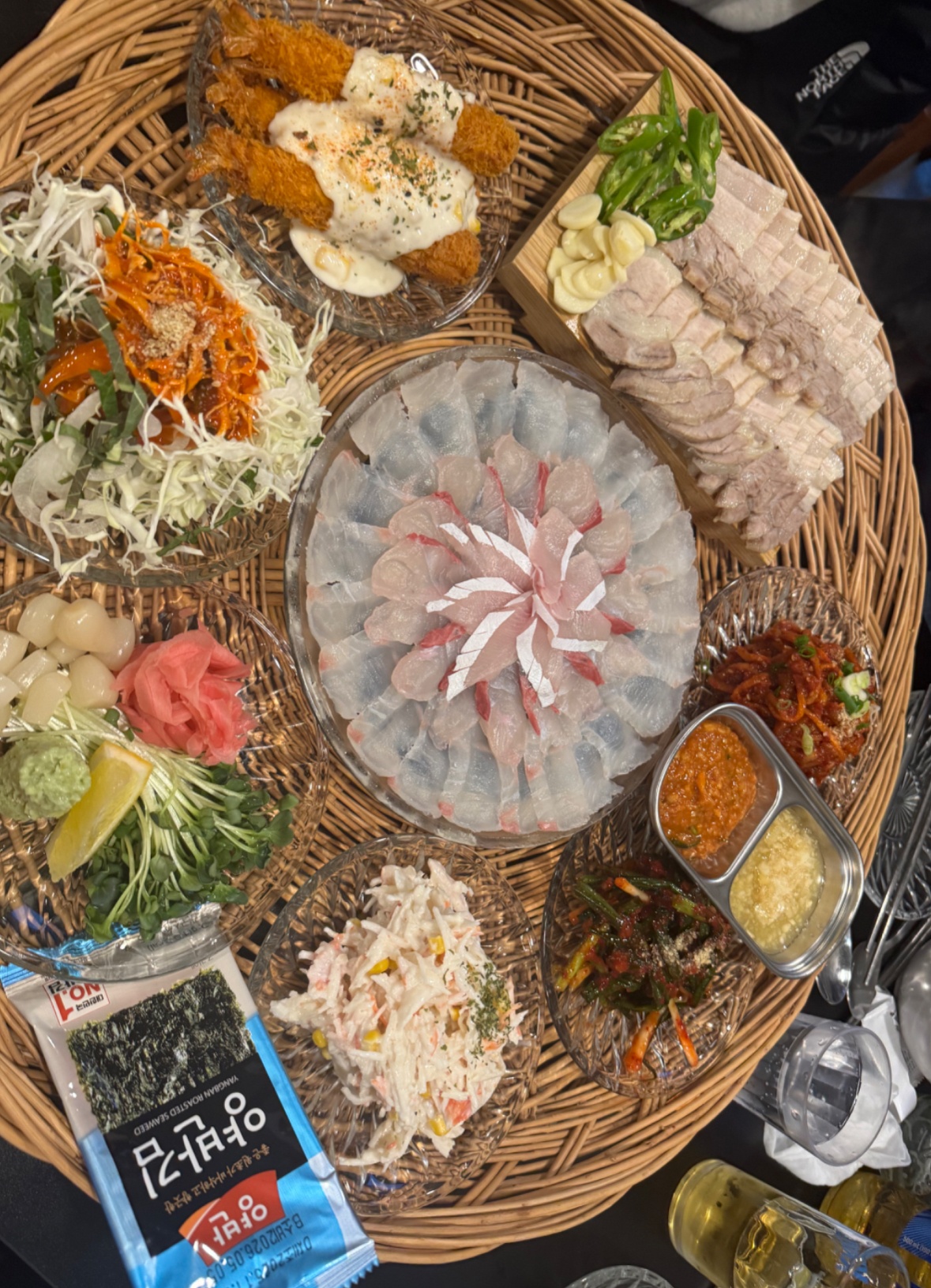 신선한 재료로 완성된 한 상