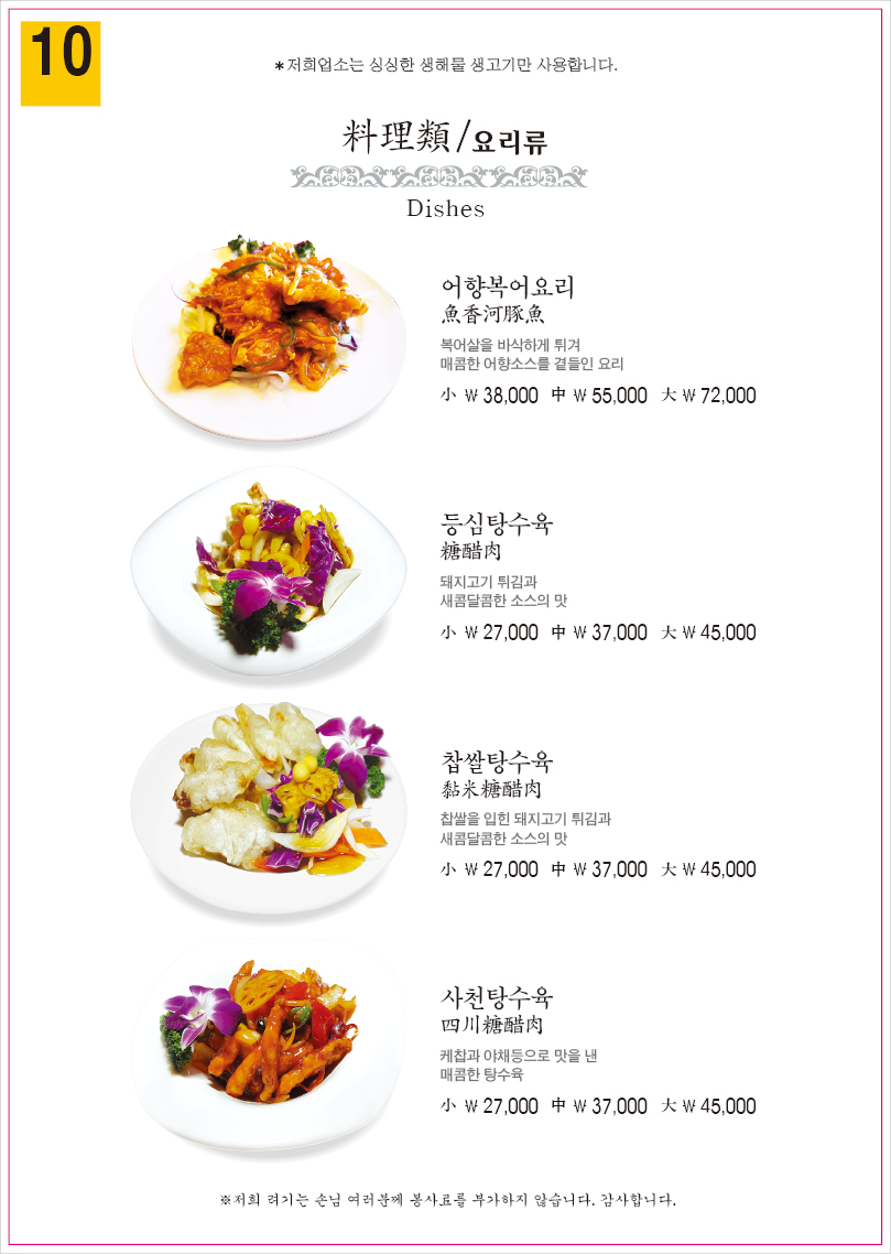 키워드: 유니짜장, 삼선짬뽕, 탕수육, 깐풍기, 한우간짜장