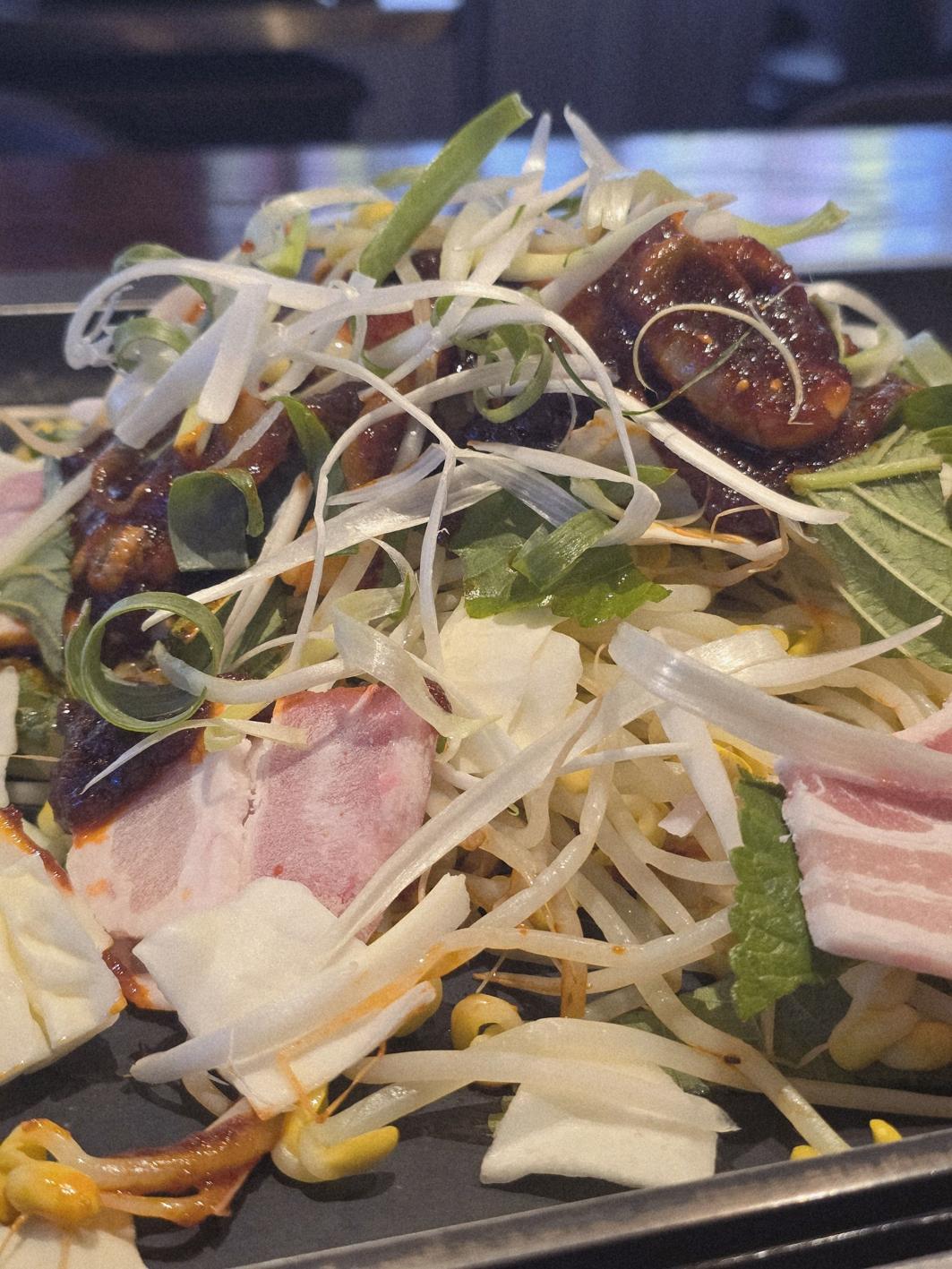 넓은 철판에 담긴 풍성한 맛