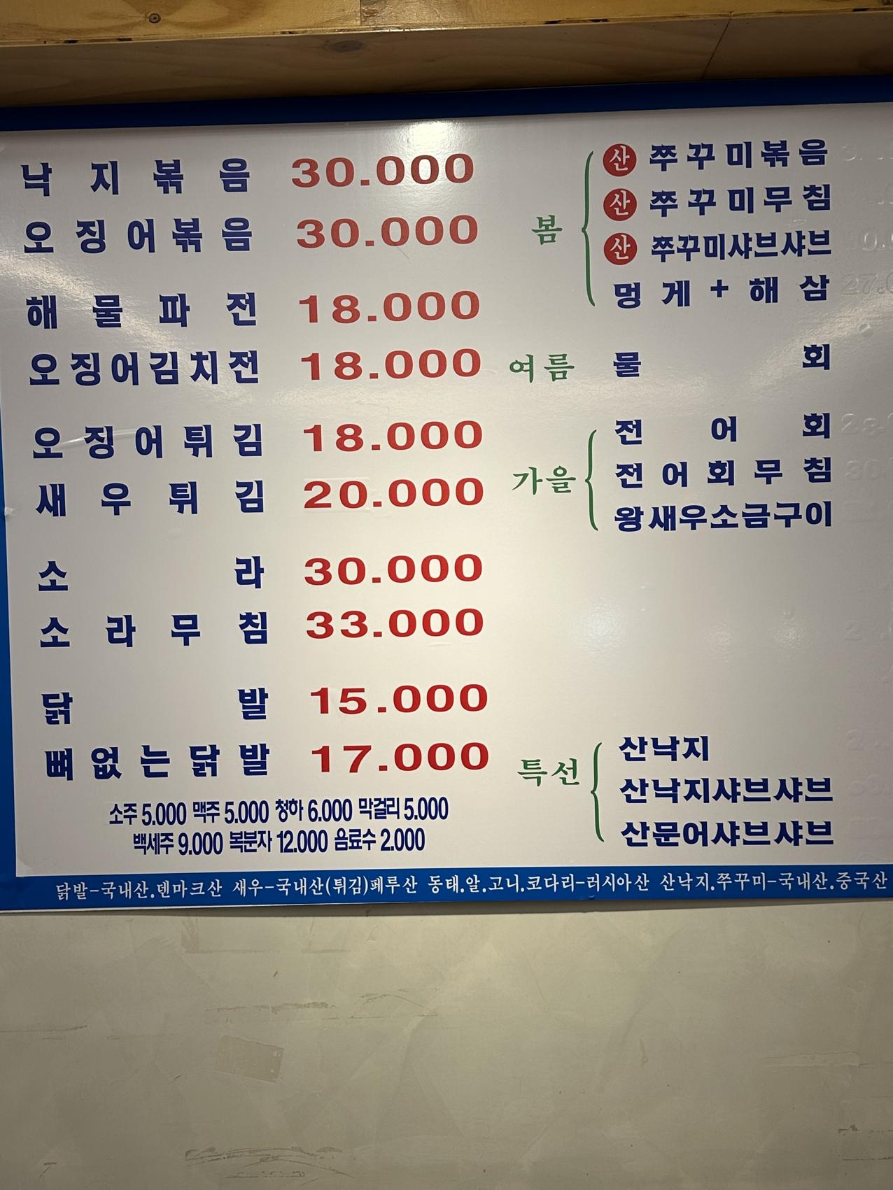 키워드: 목롯집삼합, 동해피문어숙회, 한우육사시미, 홍새우삼합, 고등어초회