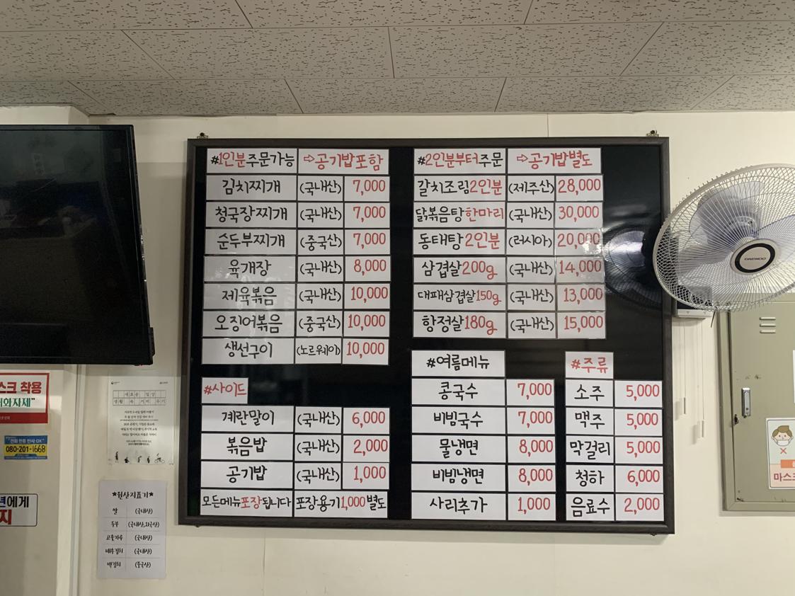 키워드: 생삼겹살, 육개장, 콩비지, 버섯불고기전골