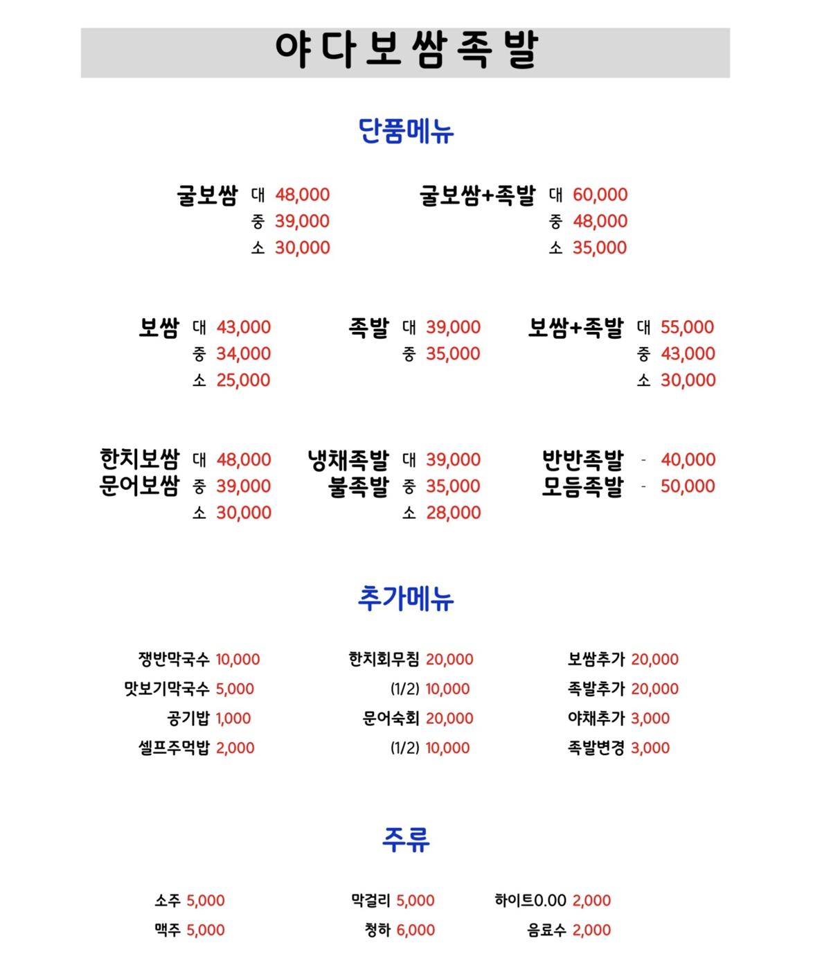 키워드: 족발, 보쌈, 굴보쌈, 냉채족발, 불족발