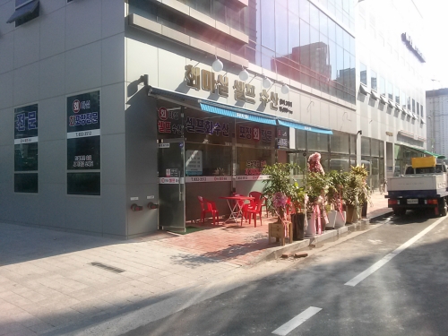 2.아트센터대로 168번길 방향ㅇ로 걷다가 송도랜드마크 푸르지오 시티 건물 1층 112호에 위치한 매장을 찾습니다.
