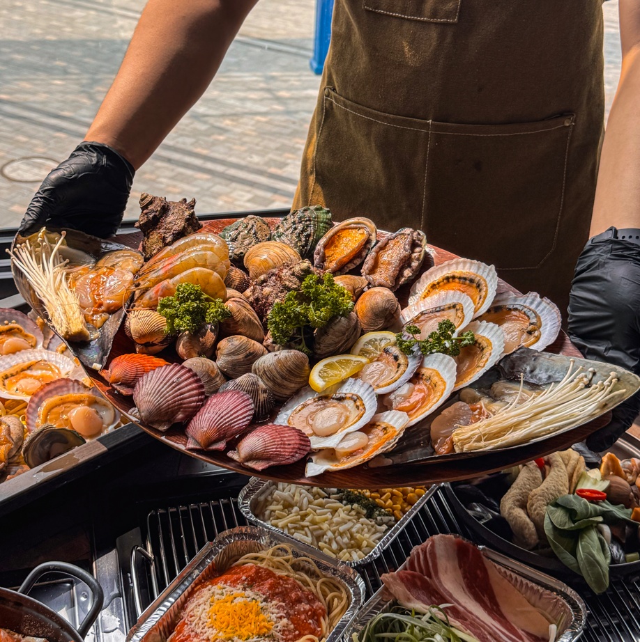 신선한 새우구이와 조개의 환상 조합