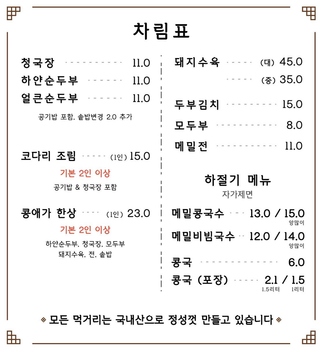 키워드: 청국장, 순두부찌개, 하얀순두부, 모두부, 얼큰순두부