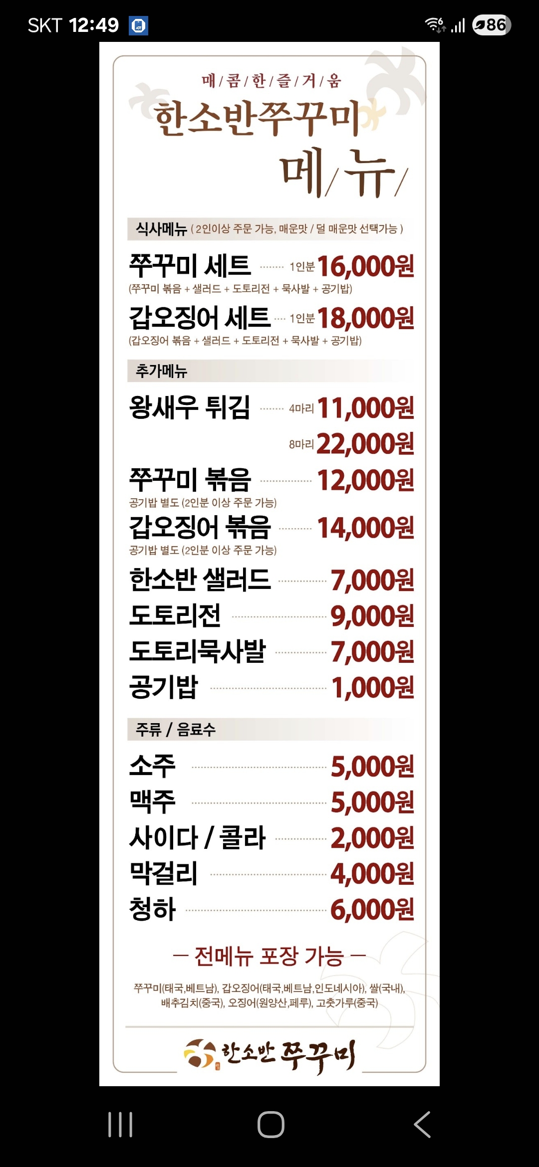 3. 한소반쭈꾸미 일산점