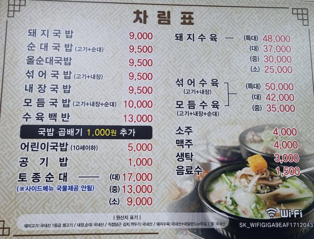 키워드: 돼지국밥, 순대국밥, 섞어국밥, 수육백반, 토종순대