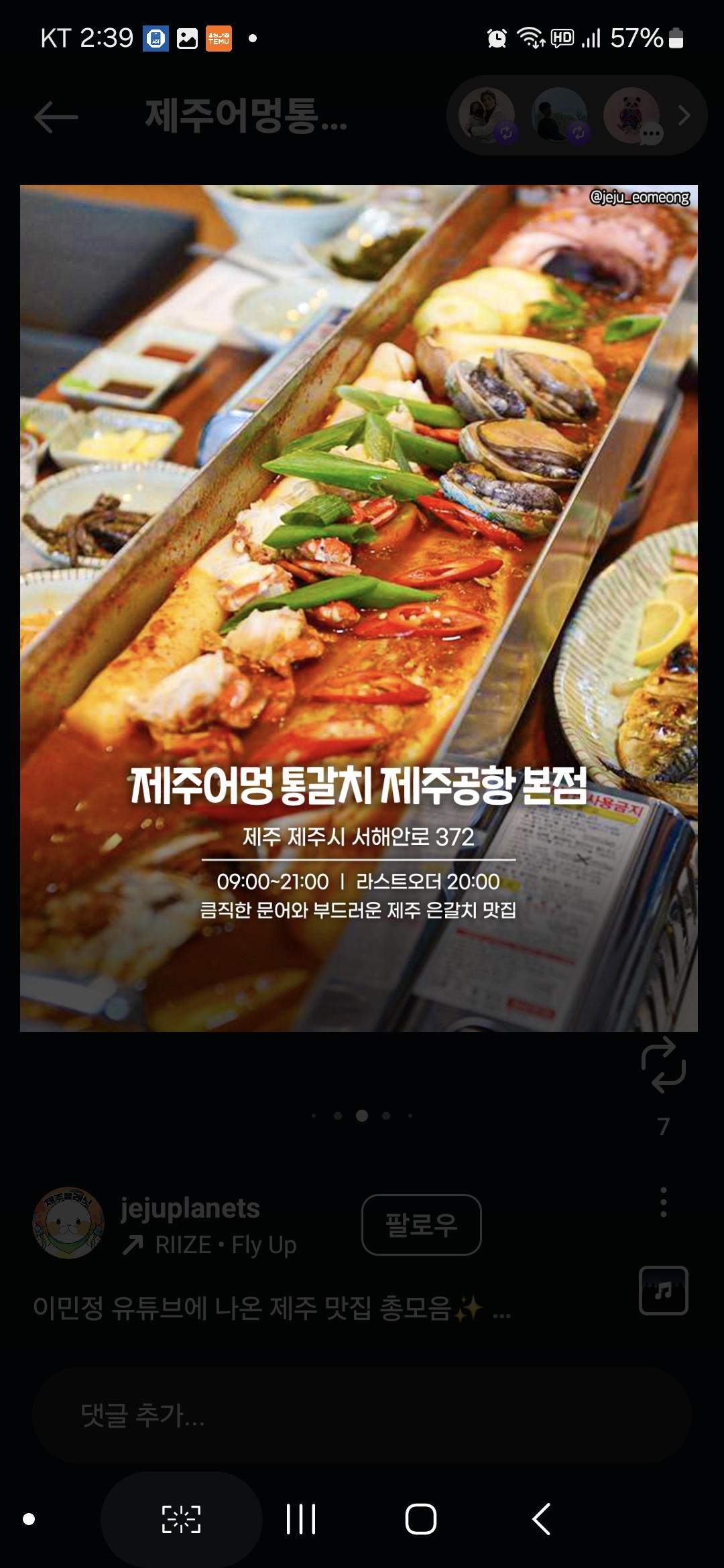 주소: 제주특별자치도 제주시 서해안로 372 제주어멍 통갈치 제주공항점
