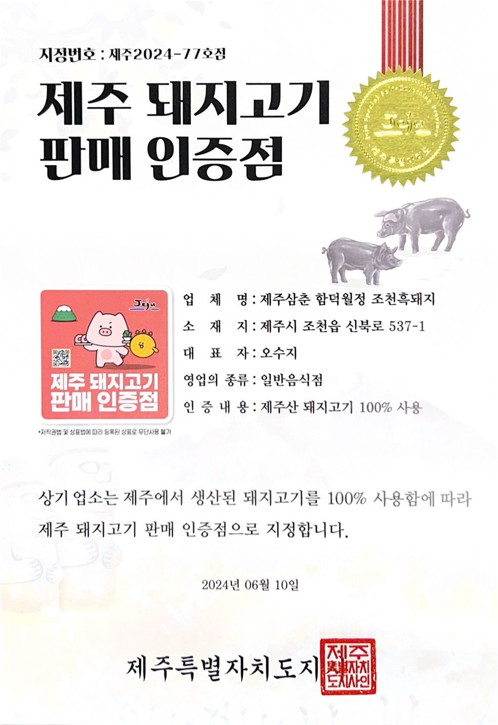 7. 돈해상 제주한림협재흑돼지