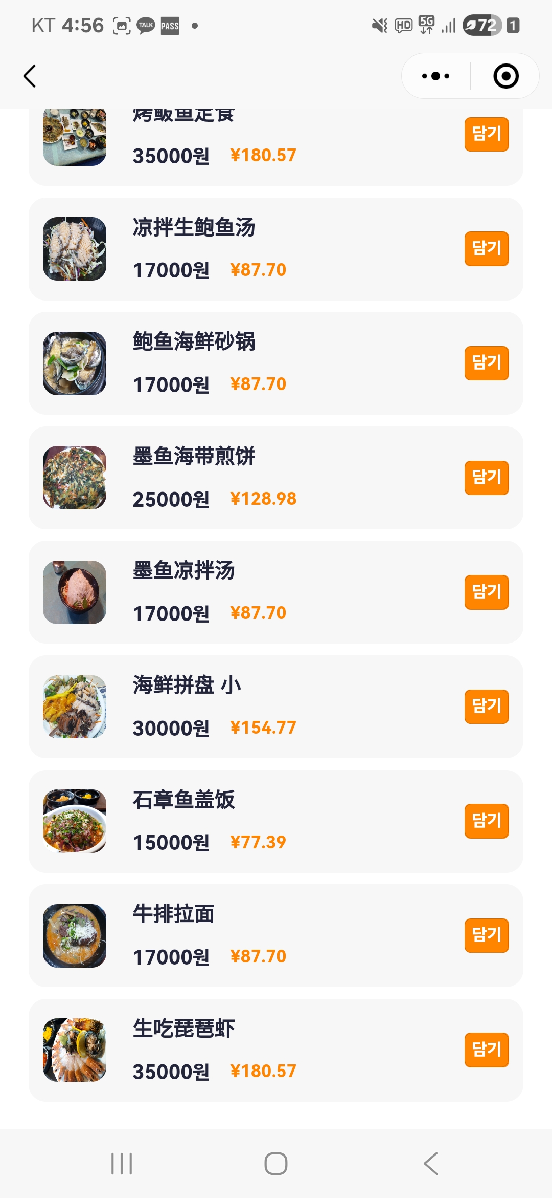 키워드: 해물라면, 물회, 딱새우회, 정식, 해물뚝배기