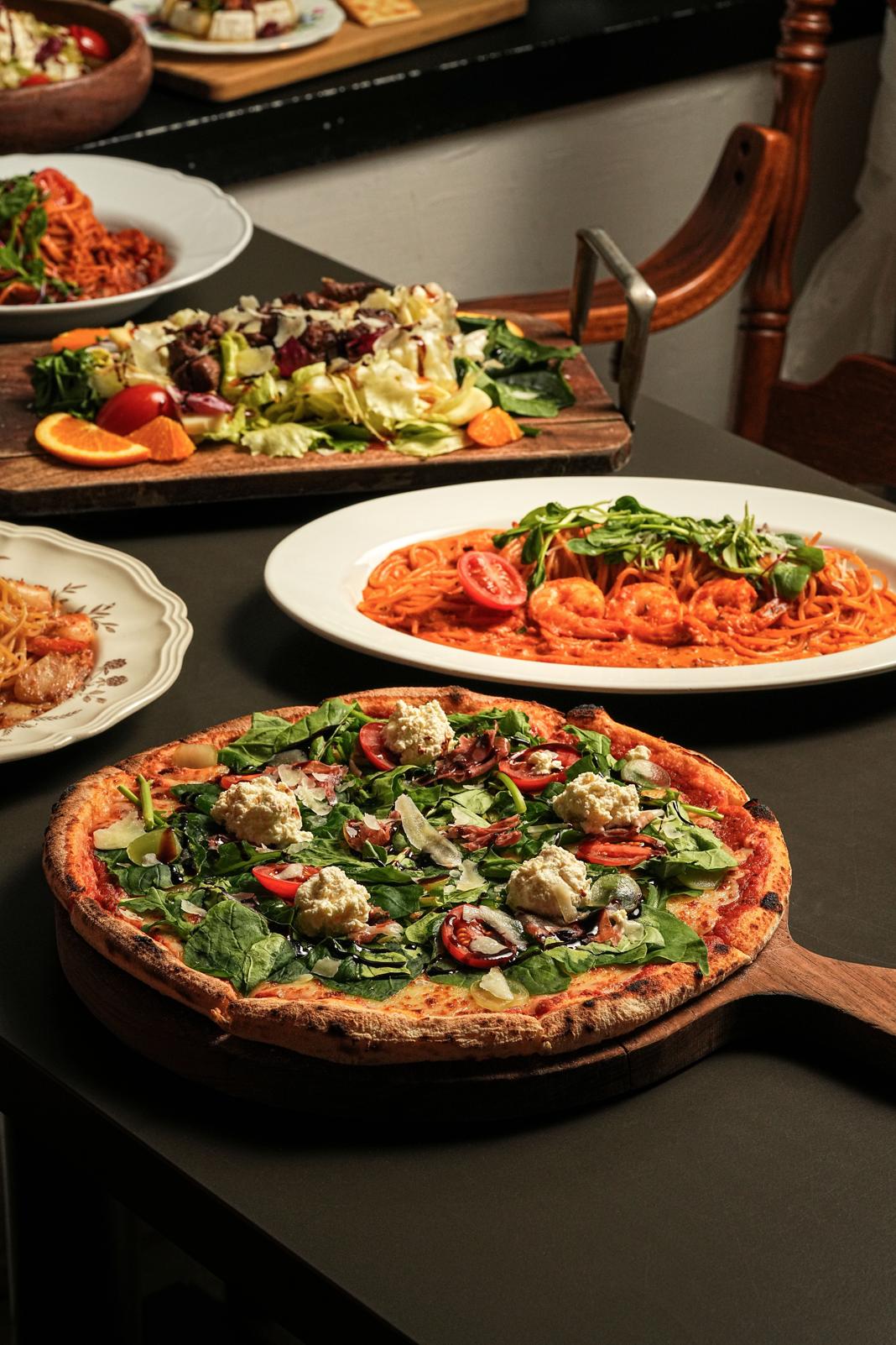 키워드: 명란크림파스타, 스테이크샐러드, 트러플머쉬롬피자, 채끝등심스테이크, 와인