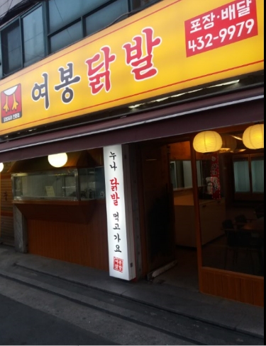 노란색 간판으로 된 국물닭발 숯불닭발 전문점 / 중랑구맛집