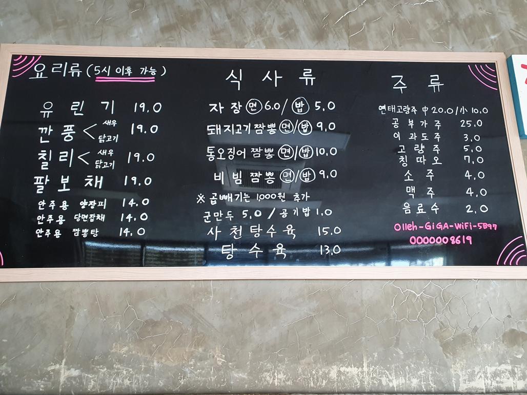 키워드: 냉짬뽕, 돼지고기짬뽕, 탕수육, 통오징어짬뽕