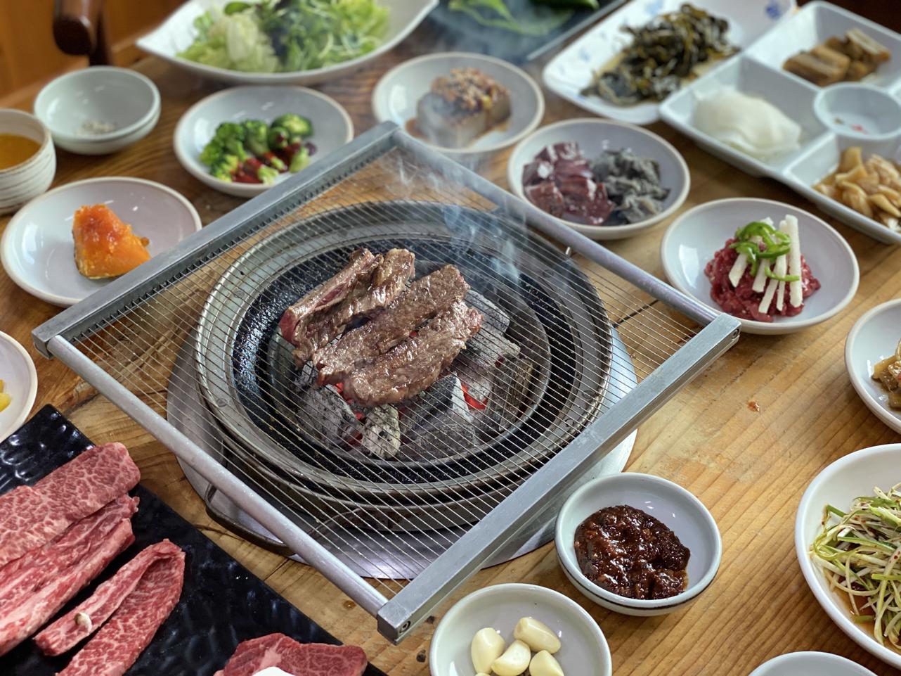 정갈한 밑반찬과 어우러진 한우의 풍미