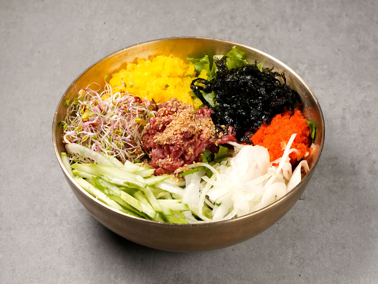 육회비빔밥의 신선함과 고소함의 조화