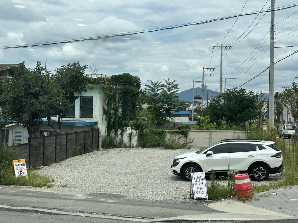 현대메밀 상가 옆 도보 주차구역 + 가게 앞 주차 가능