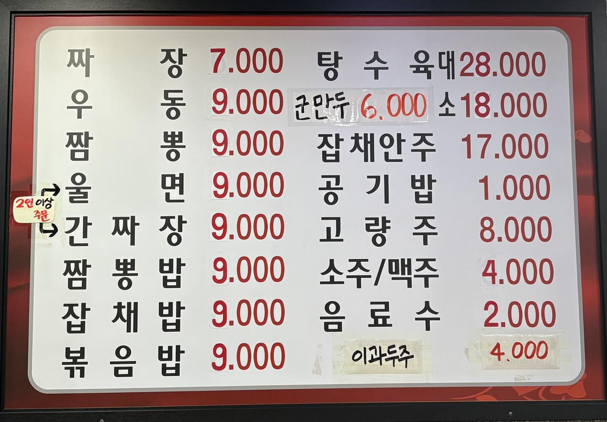 키워드: 짬뽕, 볶음밥, 탕수육, 짜장면, 짬뽕밥