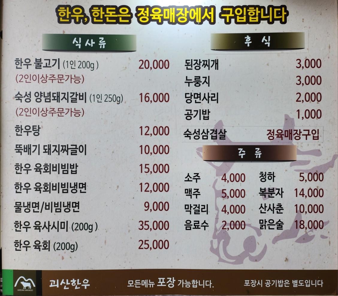 키워드: 한우, 소고기, 갈비탕, 육회, 괴산한우
