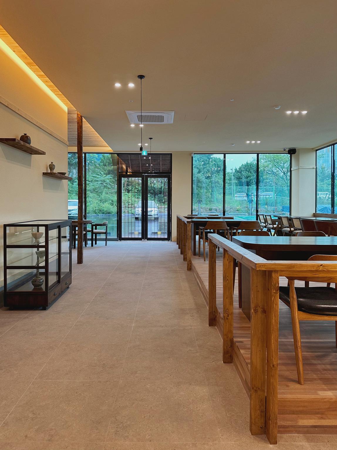 팔공산이 보이는 넓은 카페 공간