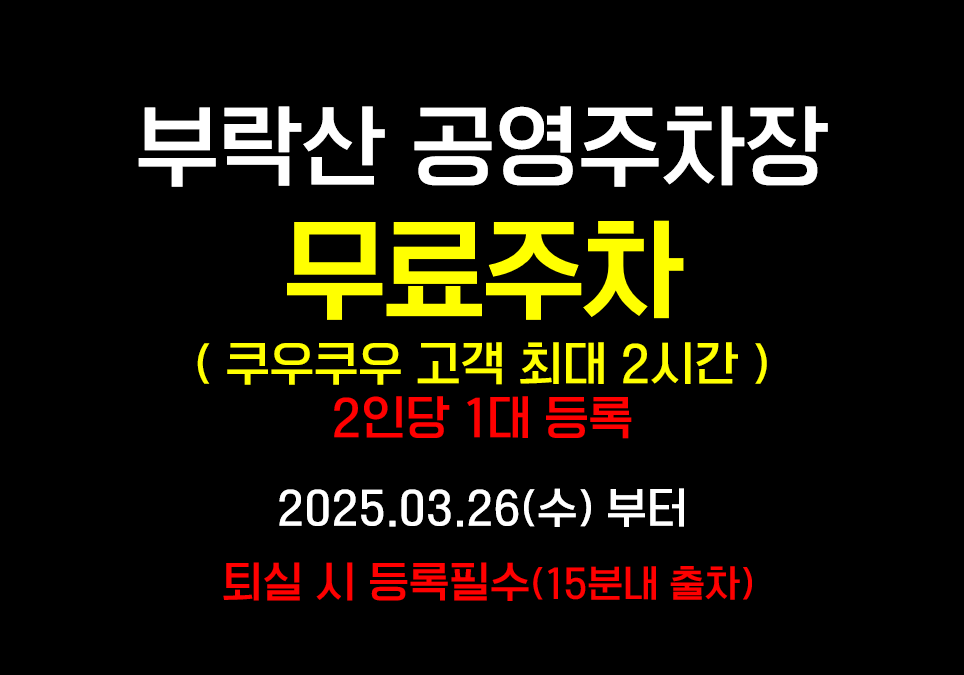 2인 기준 2시간 주차 1대 무료