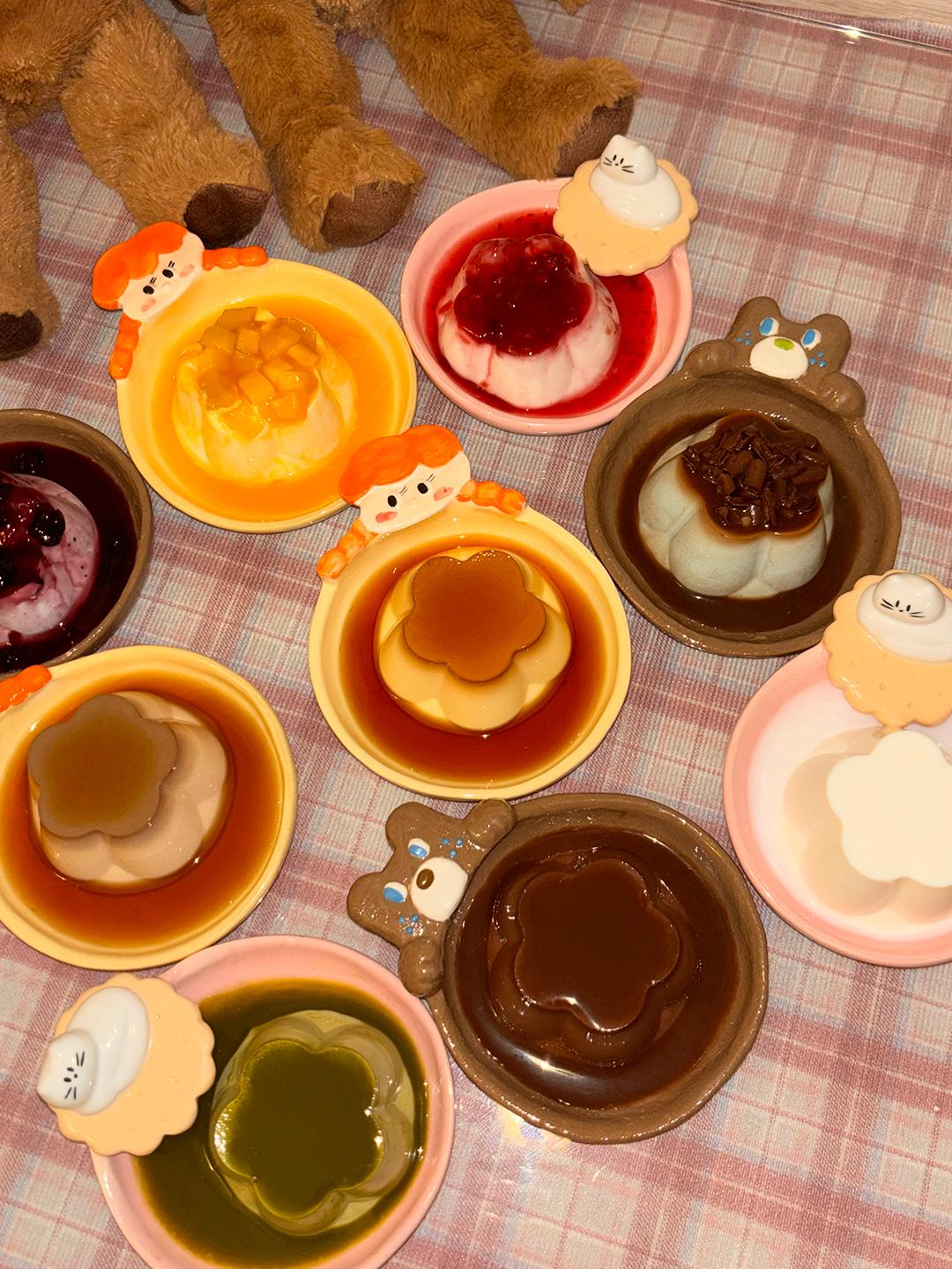 다양한 푸딩으로 가득한 행복한 선택